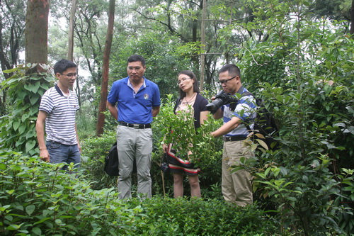 921,国家林业局新品种保护办组织专家对华南植物园申请的野牡丹属植物新品种碧霞进行现场审查,华南植物园闫俊华副主任、园艺中心蚁伟民书记、廖景平副主任等热情接待专家组,科技外事处和园林园艺部相关人员参加现场审定活动。经专家组现场审查鉴定,认为该品种性状具有特异性、一致性和稳定性,确认碧霞新品种成立。