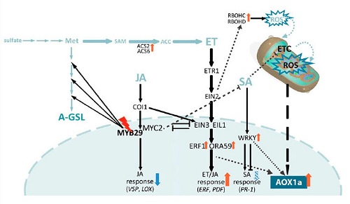 植物通过不同的相互作用的信号转导途径感知和整合来自环境的各种激素和信号分子。细胞核编码的线粒体交替氧化酶(Alterative oxidase1a,aox1a)作为一个模式系统已经被用于研究线粒体和细胞核之间的逆行或压力信号(Retrograde signaling)。