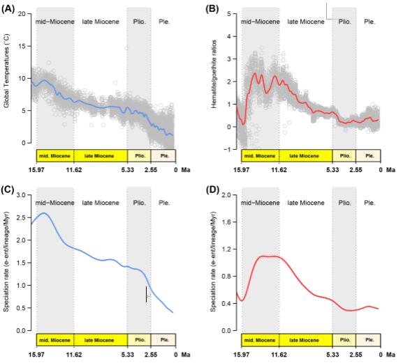 华南植物园科研人员通过广泛调查取样,采用多基因片段重建了苦苣苔科报春苣苔属近190个物种的系统发育关系和生物地理历史;整合历史气候变化和物种形成模型,推测出全球温度变化及东亚季风气候对报春苣苔属物种形成速率和进化历史有显著的影响。本研究首次量化地揭示东亚季风气候对植物物种形成的影响,研究结果为理解东亚季风气候对该地区植物多样性物种形成和演化提供了一个很好的研究框架,同时也为理解东亚地区生物多样性的起源、形成及维持机制奠定了的理论基础。