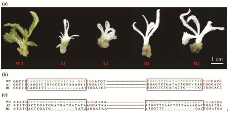 图2 由CRISPR/Cas系统的基因因编辑引起的猕猴桃白化表型