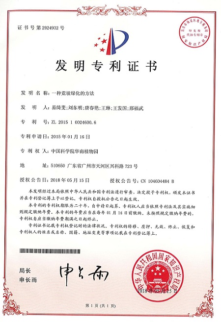 6月19日获悉,由中科院华南植物园易绮斐等科研人员完成的“一种荒坡绿化的方法”获得国家发明专利授权(专利号:ZL201510024600.6)。