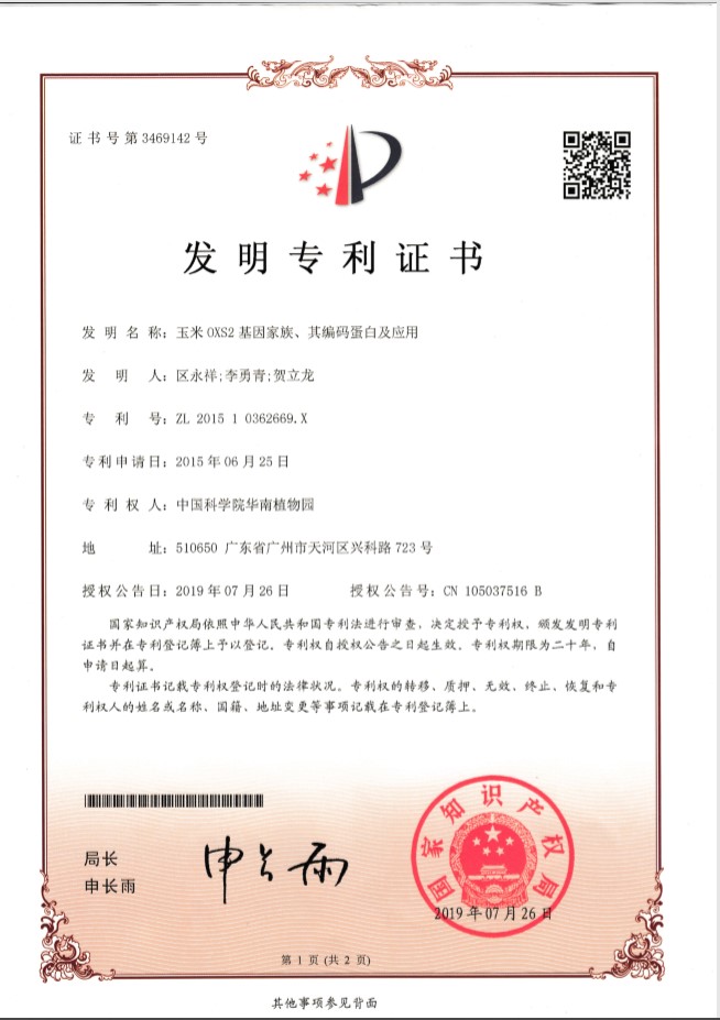结果表明,该些基因的表达都受到镉胁迫的诱导,而且当它们在拟南芥中高表达时,可以特异地增强拟南芥对镉的耐受性,从而提高拟南芥在逆境下的生长能力(图1)。显然,ZmOXS2b与ZmO2L1的应用将能大大提高作物对重金属胁迫的耐受性,在抗逆作物分子设计育种上有着巨大的价值。相关专利于2019年7月获得了国家知识产权局的授权。