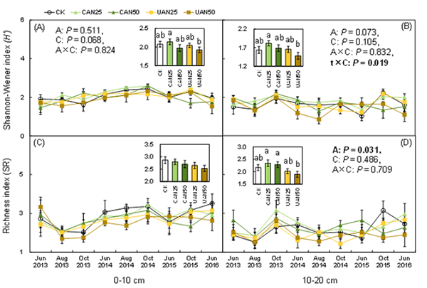 图2. 林冠施氮和林下施氮对土壤线虫多样性的影响
