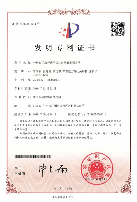 华南植物园利用子房注射法建立了兜兰转基因技术体系