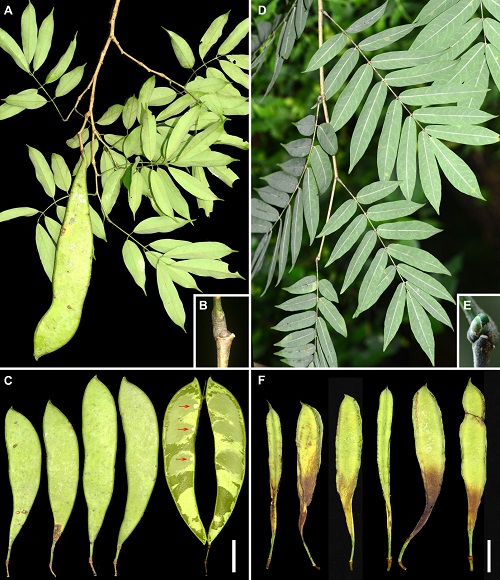 该属的2个近缘属:肿荚豆属粉叶肿荚豆(Antheroporum glaucum Z. Wei)和滇鱼藤属滇鱼藤[Ohashia yunnanensis (Chun & F. C. How) X. Y. Zhu & R. P. Zhang]