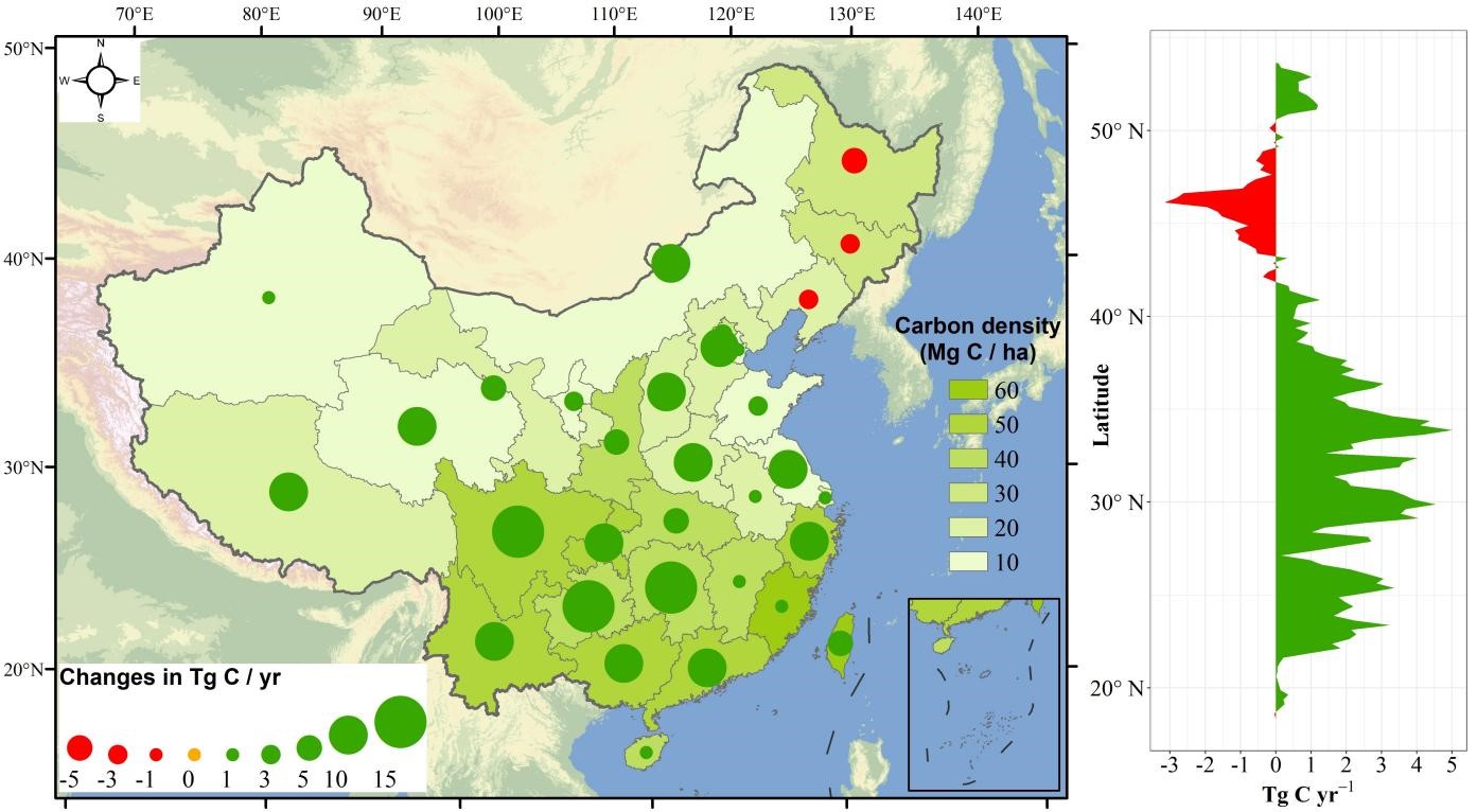 随着国家林业重点工程的实施,我国森林在过去几十年间扮演着碳汇功能,对区域和全球碳平衡贡献显著。在全球变化背景下,陆地生态系统,尤其是森林的固碳能力将继续发挥重要作用。为了满足我国森林碳汇的科学管理和应对我国双碳目标的科学评估,急需摸清我国森林碳储量空间分布和变化规律。