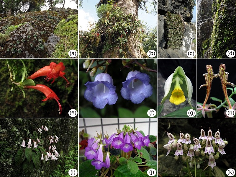 图1. 苦苣苔科植物的生态适应性及形态多样性