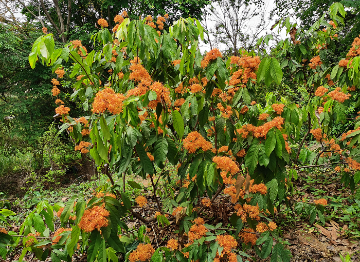 无忧花属新品种四季无忧为常绿灌木,株高1-3m,树冠宽圆形,分枝低。新叶下垂,黄绿色。伞房状圆锥花序,花黄橙红色,花期长(3-12月),一年四季花开不断,花朵繁密,具有极高的观赏价值,可用于庭院栽培或盆栽观赏,具有较好的推广应用前景。