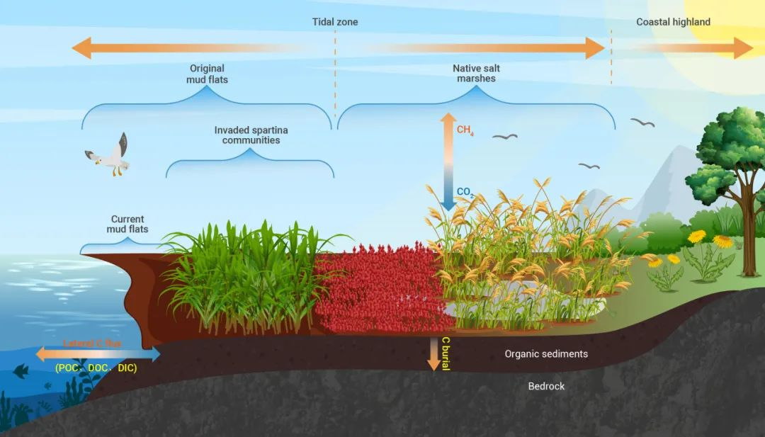 然而大部分的海岸带湿地的生态恢复都是以提高湿地面积为目标,忽视了生态质量和生态功能的恢复。相对于红树林,中国有更大面积的盐沼和滩涂湿地,如何保护和恢复这些海岸带湿地对于海岸带生态系统功能的提升至关重要。此外,我国海岸带滩涂目前正面临互花米草入侵的威胁。尽管互花米草入侵后的泥滩滩涂的碳汇功能增加,提升了其蓝碳储量,但是入侵导致了其他生态系统功能的改变,如底栖生物多样性和鸟类多样性的变化。因此,需要进一步评估互花米草入侵后的综合生态效应。