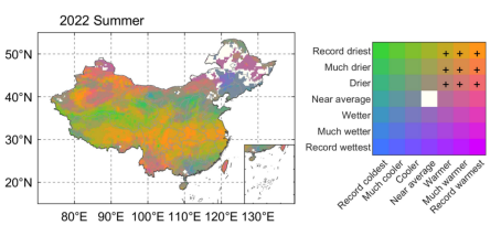 中国科学院华南植物园徐文芳副研究员利用多源遥感数据、再分析气候数据和地球系统模式模拟数据,及时评估了2022夏季热浪和干旱耦合事件对中国区域不同类型植被的影响。基于地球系统模式在不同气候情景下的模拟结果,在未来高排放情境下(SSP585),相比于2022年,极端热浪发生的概率将由0.42%(2023-2032)增加到85.69%(2083-2092)。本研究强调了研究极端热浪和干旱事件对生态系统影响的重要意义。
