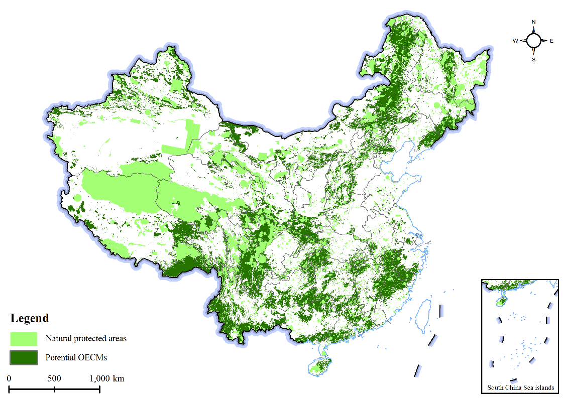 中国科学院华南植物园恢复生态学团队任海研究员等发现,我国的各类PAs已经就地保护了约75%的受威胁植物物种,若将我国已划定的EPRLs中,那些对生物多样性很重要但不在现有或规划的PAs内的约12%的区域划作OECMs,则可以保护额外大约20%的受威胁植物。这样的话,只有约5%的受威胁植物和一些受威胁动物生活在EPRLs之外,只需通过迁地保护即可实现受威胁动植物的全覆盖,实现效率最大化。
