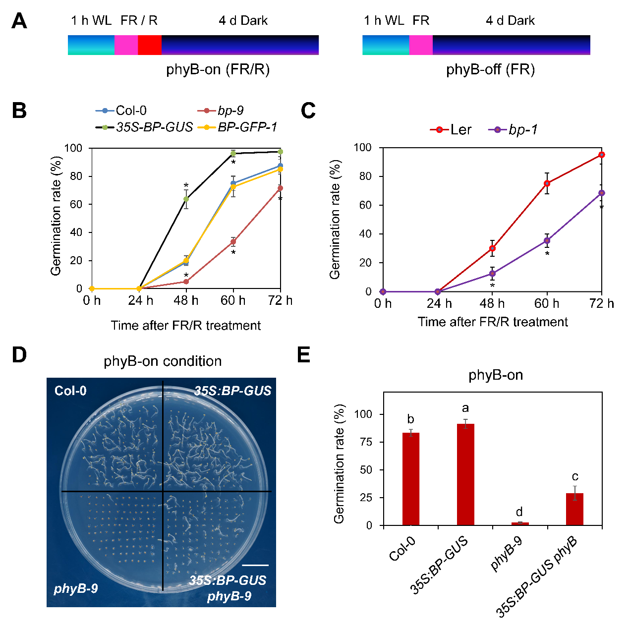 图1. BP是phyB介导的促进种子萌发过程中的正调控因子