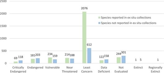 中国树木各濒危等级在中国植物园迁地收集情况。文香英 供图