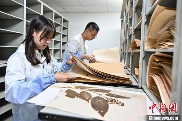 7月24日,澳门大学生高莹在华南国家植物园标本馆对植物标本进行分类整理。 陈骥旻 摄