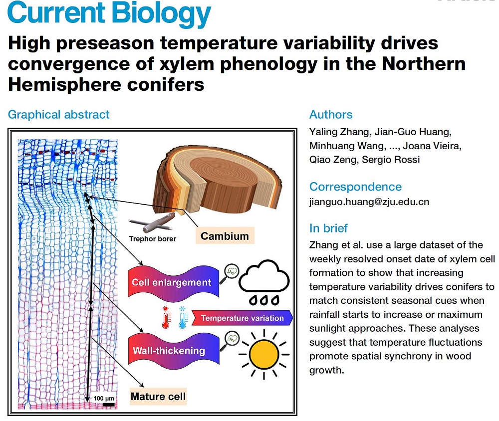 近日,中国科学院华南植物园副研究员张亚玲与浙江大学生命科学学院求是特聘教授黄建国团队同全球共28家科研单位/部门开展合作,首次揭示了北半球尺度内森林木质部春季物候对温度波动的响应。相关成果发表于《当代生物学》杂志。