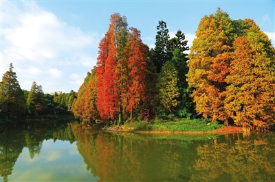 另悉,每年深秋时节,生长于水边的落羽杉的树叶呈现出丰富的颜色层次。挺直的树身,膨大的气生根,倒影在碧绿的水中,分外迷人。