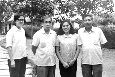 1986年10月学生何洁赴澳大利亚攻读博士研究生前夕与王以柔、郭俊彦和刘鸿先三位导师在华南植物研究所留影纪念。