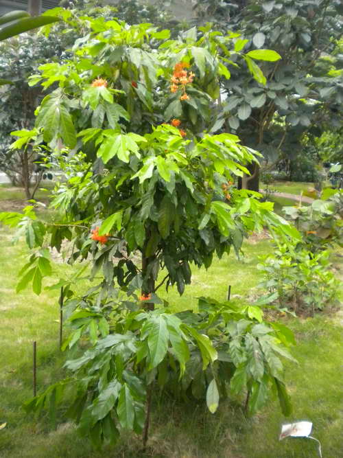 垂枝无忧树:雄蕊4枚,花期5-6月。叶柄短,1.5-2cm。怕寒冷,在广州度冬需要覆盖薄膜至天气回暖。原产缅甸、马来半岛、泰国等地。