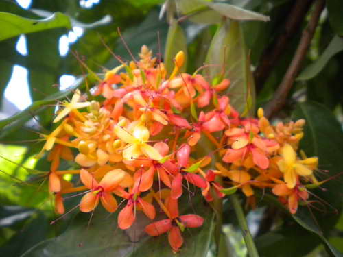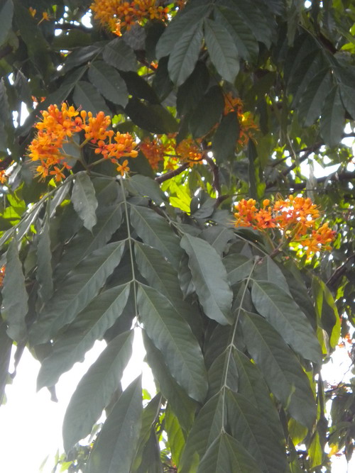 每年的春季,满树满枝的中国无忧花(Saraca dives Pierre)盛开在华南植物园的各个地方,橙黄橙黄的一片片,为游人带来无比祥瑞的色彩。华南植物园的中国无忧花自从1974年从广西大青山引种回来后,生长、繁殖良好,现在遍布在姜园、城市景观园、苏铁园、温室内和园区里的其它地方,十分易于游客观赏。而为游人难以看到是,在植物园的繁育中心种植着的一种在初夏五月盛开的无忧树,它就是垂枝无忧树(Sacara declinata)。乍一看,它和中国无忧花十分相似,要细细观察才能将二者区分。两者的主要区别为: