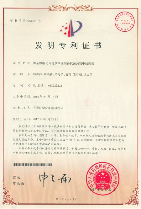3月23日获悉,由中科院华南植物园邱声祥研究员等科研人员完成的“桃金娘酮化合物及其在制备抗菌药物中的应用”获得国家发明专利授权(专利号:ZL201510182272.2)。