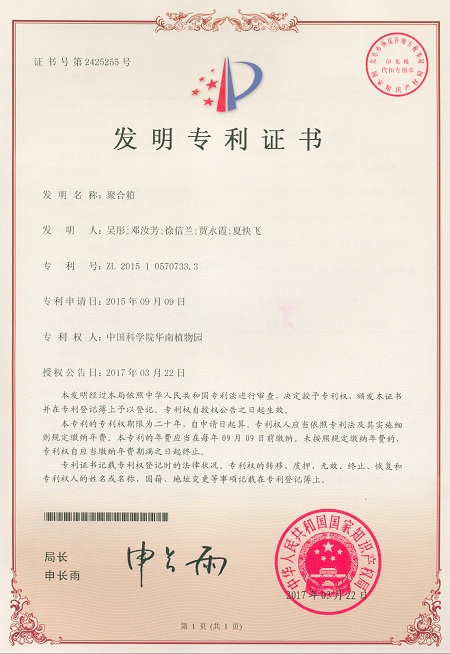 4月18日获悉,由中科院华南植物园吴彤等科研人员完成的“聚合箱”获得国家发明专利授权(专利号:ZL 201510570733.3)。