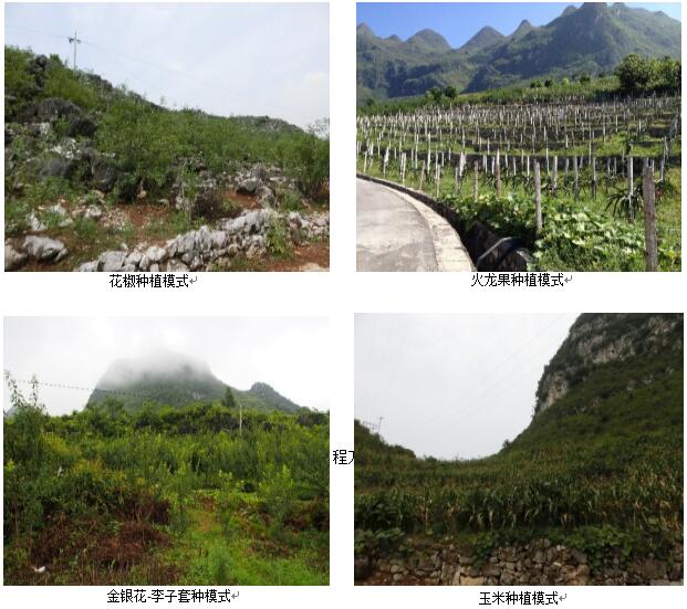 中科院华南植物园植被与景观生态研究组博士生程方在导师任海和陆宏芳研究员的指导下,与贵州省贞丰县委、县政府合作,选取贵州省贞丰县花椒(Zanthoxylum bungeanum Maxim)种植模式(顶坛模式)、贞丰县金银花(Lonicera fulvotomentosa Hsu et S. C. Cheng)-李子(Prunus salicind Lindl)套种模式(坪上模式)、关岭县火龙果(Hylocereus undulates Britt)种植模式(板贵模式)等3种典型的石漠化治理模式,以及贞丰县花椒种植模式的生态工程加环(养殖和沼气环节)开展能值与经济的综合量化评价,并以玉米(Zea mays L.)种植模式(传统农作物种植模式)作为对照。