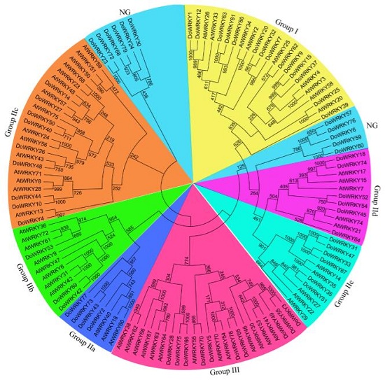 图1. 铁皮石斛和拟南芥WRKY蛋白无根进化树