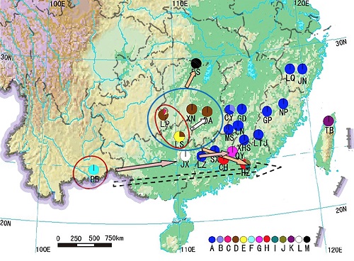 图3.伯乐树在中国可能的历史迁移和扩张路线
