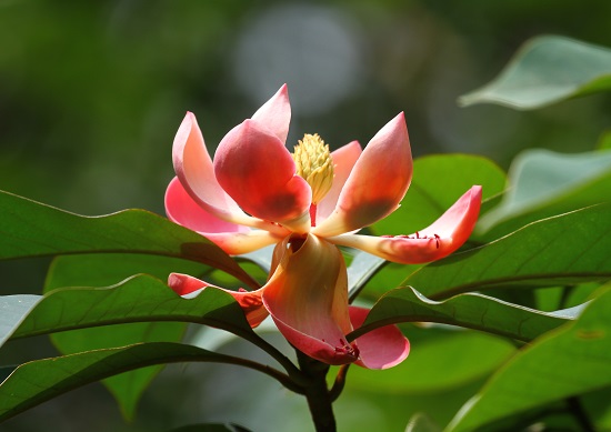 ‘嫣红’是2008年以大叶木莲(Manglietia megaphylla Hu et Cheng)为母本、文山木莲(Manglietia sp.)为父本人工杂交培育获得。杂交后代苗栽培5年后开花,然后筛选优良单株进行嫁接繁殖。