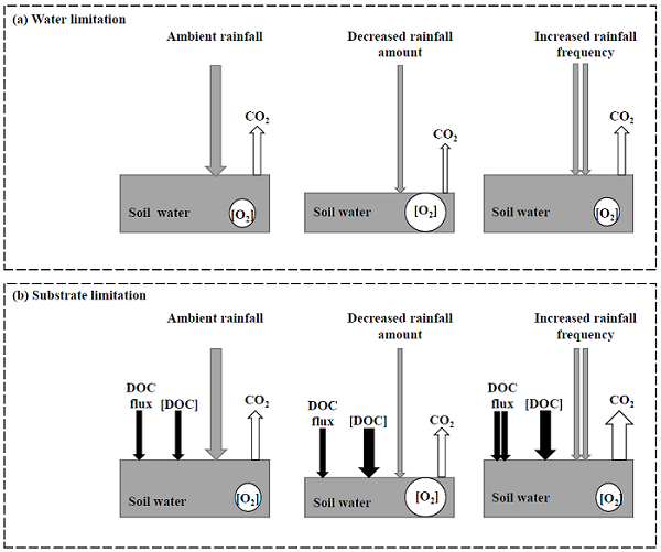 图:降雨变化对土壤CO2排放潜在影响的概念模型