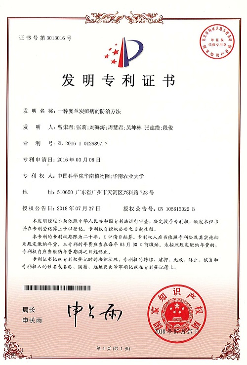 8月28日获悉,由中科院华南植物园曾宋君等看科研人员完成的“一种兜兰炭疽病的防治方法”获得国家发明专利授权(专利号:ZL 201610129897.7)。
