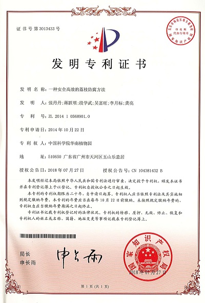 9月17日获悉,由中科院华南植物园张丹丹等科研人员完成的“一种安全高效的荔枝防腐方法”获得国家发明专利授权。