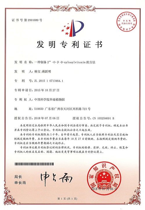 10月16日获悉,由中科院华南植物园杨宝、蒋跃明等科研人员完成的“一种制备2”-O-β-D-xylosylvitexin的方法”获得国家发明专利授权。