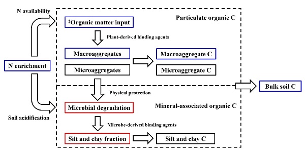 图2. 概念模型:土壤团聚体及其碳固存对氮富集的潜在响应机制