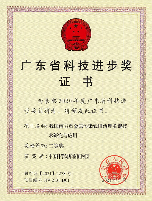 6月7日获悉,由中科院华南植物园李志安研究员主持的“我国南方重金属污染农田治理关键技术研究与应用”项目,经评定,荣获2020年度广东省科技进步二等奖。