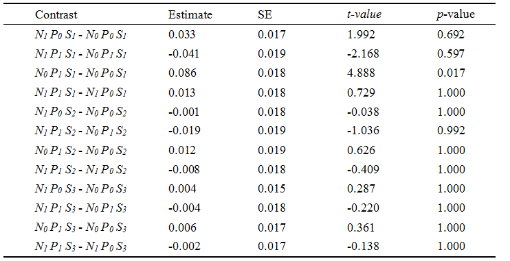 表1. 氮添加和降雨量增加交互效应的事后分析。