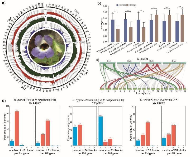图4. 比较基因组分析揭示核心长蒴苣苔亚族异源多倍体起源