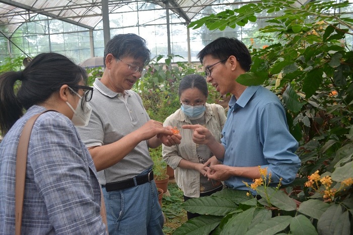 5月11日,国家林草局植物新品种保护办公室组织专家对中国科学院华南植物园宁祖林、陈玲、卢琼妹、李冬梅、刘华等科研人员培育的紫金牛属(Ardisia Sw.)新品种‘紫红荷1号’和‘紫红荷2号’及无忧花属(Saraca L.)新品种‘四季无忧’进行了现场审查。园艺中心副主任宁祖林及引种保育相关工作人员参加汇报和现场审定。