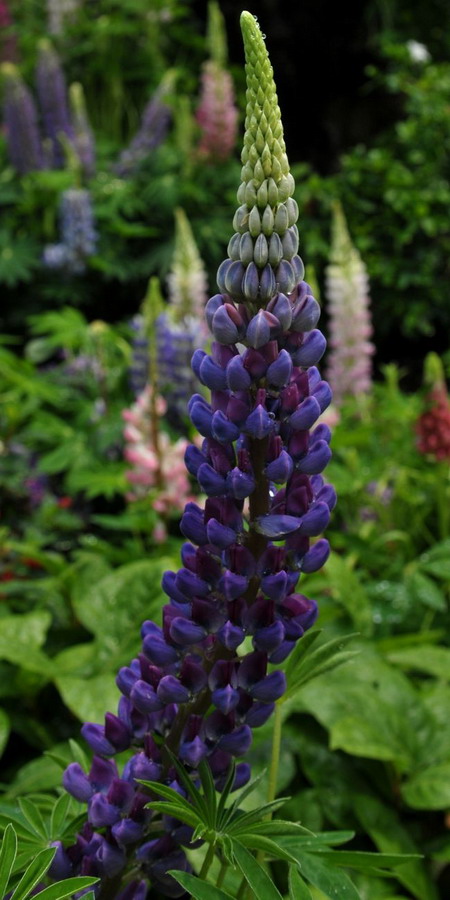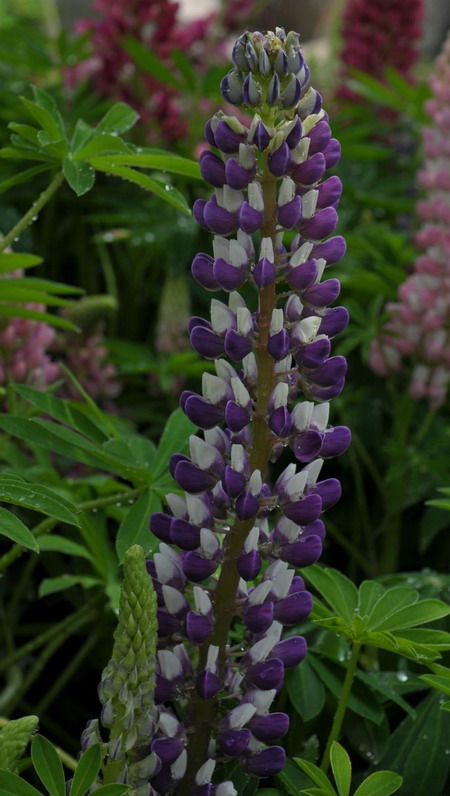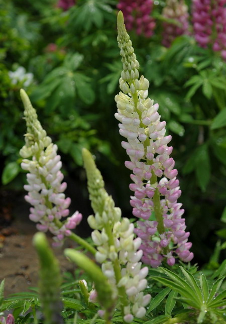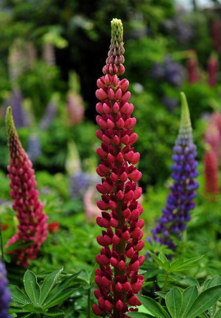 我们现在观赏到的鲁冰花,属于园艺栽培品种,一般高80厘米左右,最引人注目色是特殊造型的花序和花朵,长长的宝塔状花序自茎端伸出,由上百朵蝶形的小花密密组成,每串长50厘米左右,而且花朵颜色丰富,除了常见的白色、红色外,还有浅蓝、粉红、砖红、双色等,并散发着浓烈的沁人心脾的香味。典型的掌状复叶,由多枚细长呈放射状的小叶子构成,整片掌状复叶在长柄的支撑下,就像一把羽扇。再加上它属于的豆目家族的成员,于是便有了“羽扇豆”这个名字。自然花期通常在春季至秋季,花后结出荚果,内有黑色扁圆形的种子。你有所不知,小小的鲁冰花种子,还创造了一个世界之最呢。科学家于1976年在北美肯河岩洞中发现的鲁冰花种子至今已有17000年,是目前所知寿命最长的种子。