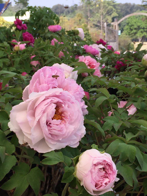 喜逢羊年新春,万株洛阳牡丹南下羊城,2015年春节牡丹风情节在华南植物园举行。此次牡丹风情节荟集了红、紫红、粉、蓝、白、绿、黄、黑、复色等九大色系、六大花型,约100个品种一万余株,其中国外品种40个。除了较为常见的洛阳红、胡红等品种外,绿色的豆绿,黄色的姚黄、蓝色的菱花湛露、黑色的青龙卧墨池、冠世墨玉、红色的太阳、花王等都是难得一见的珍稀品种。而复色的二乔、岛锦及一株树上开数种花色的什锦牡丹更是稀有。大树牡丹,高达1.5米,气势宏伟,树龄长达30年,一株树开花多达80朵,即使在牡丹之乡洛阳,这样的老树也不多见。