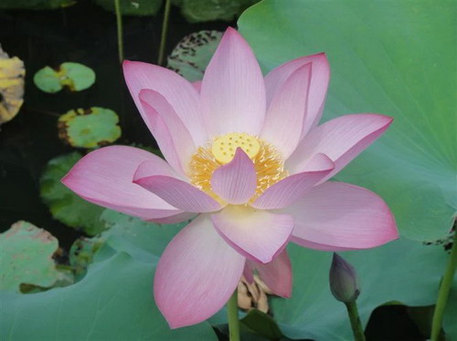 荷花(Nelumbo nucifera Gaertn.)又名莲花、水芙蓉、水宫仙子等,属莲科(Nelumbonaceae)莲属(Nelumbo)多年生水生宿根草本花卉。地下茎(藕)长而肥厚,有长节,叶盾圆形,挺出水面。花期6~9月,单生于花梗顶端,花高高托出水面,花瓣多数,嵌生在花托穴内,有红、粉红、淡紫、白等多种颜色,或有彩文、镶边。果实椭圆形,种子(莲子)卵形。荷花全身皆宝,藕和莲子能食用,叶、叶柄、花托、花、雄蕊、果实、种子及根状茎均作药用。