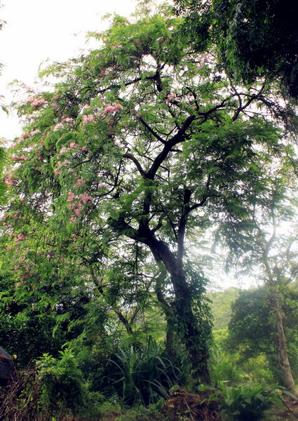 当您漫步在广州第一村入口,向远处眺望,不难发现远处一棵树上装扮着一抹抹“粉霞”,格外惹人注目。走近一看,原来是花开正茂的粉花决明。巍然耸立的树上开满一簇簇粉红色的花朵,艳丽夺目,花姿飘柔下坠,异常优美。树冠如盖带来大片浓荫,粉红的花朵娇艳美丽,为这炎炎夏日带来好心情。