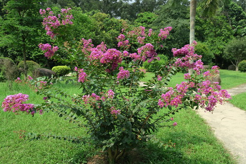 人们常说:“花无百日红”,而紫薇则是例外。紫薇花开时满树艳红,花期长达4个月,从夏至秋,花开不断,故名百日红。紫薇树干光滑,用手触摸,虽无风却可见树身轻摇,有如人怕痒态,故又称痒痒树。