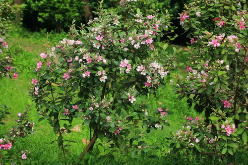除了果实香醇浓甜外,稔子树的花也甚是好看,五六月间,是稔子开花的季节,那花粉白嫩红,聚拢一堆,样子与桃花很相似,但较之桃花,却少了几分妖娆,多了几分质朴,花并不是很娇艳,但那漫山遍野的一片粉红色,实在令人心醉。稔子的花,花瓣多为五六瓣,中间围着几枚黄色的花蕊,花朵先红后白,红白相间,清丽秀美,边开花边结果,果实一开始是青色的,很小的一个,会慢慢随着成熟就变大,这首童谣便形象地唱出了果子的变化过程:七月半,稔子乌一半,八月中秋,稔子乌溜溜!九月九,稔子甜过酒;十月朝,稔子做柴烧!