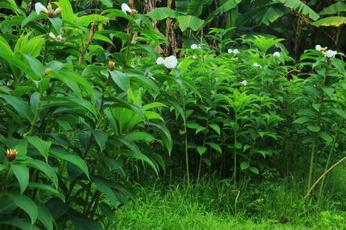盛夏时节,姜园里依旧花开满园,各种蝎尾蕉、美人蕉、闭鞘姜等你方开罢我登场,好不热闹。今天带大家认识的就是其中一种开白色花的植物,它直直的茎杆顶端开出朵朵喇叭状白花,远远望去一大片,突然让人想到一句话:和你一起到白头。它还有个别名叫“白头到老”,是不是很浪漫呢!