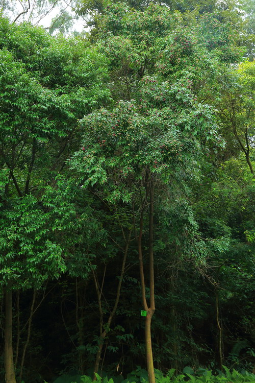 肖蒲桃(Syzygium acuminatissimum (Blume) DC.),别名荔枝母、火炭木,桃金娘科(Myrtaceae)常绿乔木,高可达20米。叶革质,卵状披针形或狭披针形,先端尾状渐尖,多油腺点,侧脉多而密。聚伞花序排成圆锥花序顶,花白色,花期7月—10月。秋后结果,浆果球形,成熟时黑紫色,果肉可食用,酸甜可口,果期10月—翌年3月。