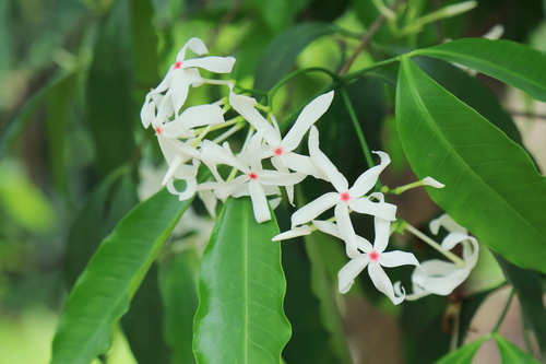 蕊木(Kopsia arborea Blume),又名梅桂、马蒙加锁(傣语)。夹竹桃科(Apocynaceae)常绿小乔木,树高达15米。具乳汁。叶对生,椭圆形或长圆形。聚伞花序顶生,花多,花冠高脚碟状,花色洁白素雅,中心一点红。花期4-9月。