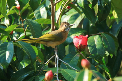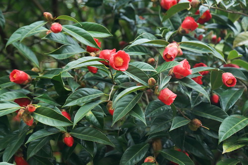 近段时间的广州仿如跌入冰窖,那种彻骨的冷是呆在暖气房里的北方孩子无法想象的。在这样的温度下,华南植物园里的很多温带树种均已落叶,只剩光秃秃的树干。而在山茶园里却是另外一幅景象,各种山茶花不畏严寒,竞相绽放,笑傲风霜,给这寒冬带来缤纷色彩。近日,其中有一种茶花成为明星,她满树开满喇叭状花朵,鲜红夺目,似热情奔放的少女,引来四方游客驻足观赏,啧啧称赞,鸟儿们也频频光顾其枝头,因此吸引了大批观鸟爱好者前来“打鸟”,这被围观的就是广宁红花油茶。