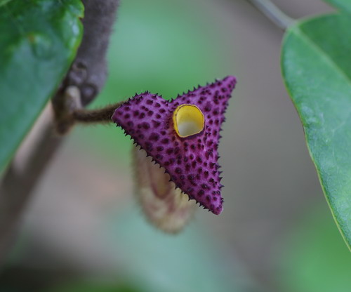 木本马兜铃(Aristolochia arborea),是目前华植物园内仅有的一种非藤本的马兜铃,我每次看到这个花花都想到张开嗓门哭喊的熊孩子,中间那柱头象极了嗓子眼。