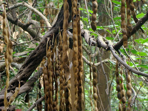 褶皮黧豆挂满枝头,像一串串紫葡萄